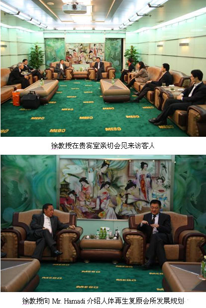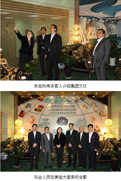 10月22日上午,美宝国际集团董事局主席徐荣祥教授在集团贵宾室亲切会见Mr. Hamadi一行将本次访问活动推向了高潮。徐教授表示美宝印尼市场一直以来都是manbetx体首最为关注的市场区域之一,对双方所达成的五年规划、新产品发展计划及新的合作模式表示祝贺,并向客人全面通报了近年来美宝在癌症研究及再生会所等方面取得的重大进展,并提出印尼将是美宝人体再生复原俱乐部全球推广计划的基地之一。Mr. Hamadi首先对于徐教授的介绍表示感谢,对于美宝在癌症研究方面取得的成就表示祝贺,同时对于徐教授提出的计划连声表示赞同,希望回到印尼后能够尽快启动这项计划,希望自己尽快在印尼享受到人体再生复原技术带来的养生效果。