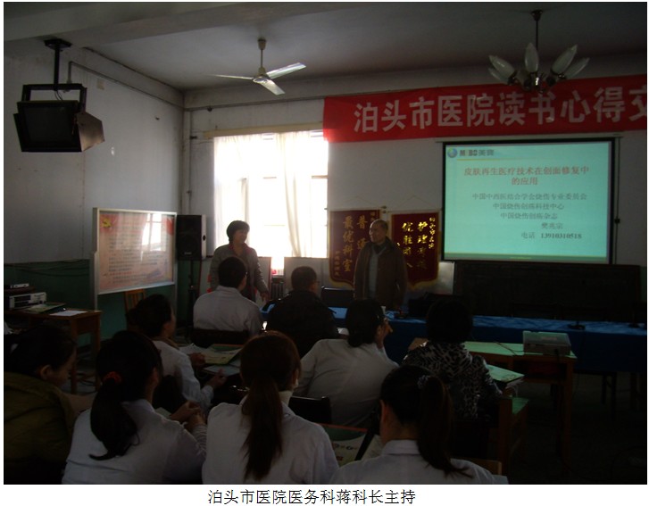 任丘市人民医院是一所二级甲等综合性医院;泊头市人民医院是赞皇县唯一医疗、教学、科研、急救、康复为一体的综合性二级甲等医院,两院均为当地核心医院,承担着大量重要的医疗救治工作。此次培训,樊兆宗教授主讲内容为再生医疗技术在多学科的应用,樊教授通过典型临床病例的治疗介绍了再生医疗技术在外科创面、骨外露、皮肤溃疡(褥疮)、糖尿病足、肛肠换药等多学科的临床应用。