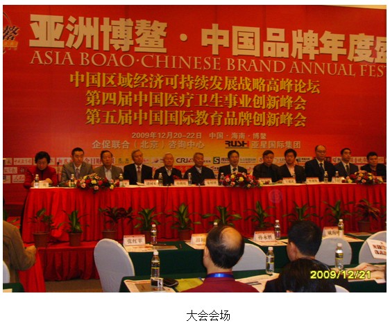 2009年岁末的海南鲜花盛开暖意浓浓,备受瞩目的“亚洲博鳌·中国品牌年度盛典”大型系列活动12月20~22日在海南博鳌隆重举行。中宣部原部长朱厚泽、全国工商联原副主席桓玉珊、卫生部原副部长孙隆椿、国家中医药管理局原副局长褚国本等领导出席会议。
