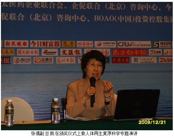 人体再生复原科学是用人类体细胞被诱导为干细胞、再原位再生复原组织和器官的系列技术成就,这些成就实现了人体各组织和器官的原位再生复原,是人类生命科学最前沿独创的科学研究成就。是对人体自身细胞的再生潜能以及针对人体再生潜能发挥所需的再生营养物质的科学研究,人体再生复原科学研究不仅继续了干细胞研究,而且实现了西方世界生命科学前沿还没有达成的临床应用结果,在临床实践上完成了人体组织和器官的原位再生复原。对于这样一个重大科技创新成果,在同期进行的第四届中国医疗创新论坛上,由于时间紧张,大会组委会原来只安排了中国民族医药学会会长褚国本和北京医改小组负责人、北京大学的周子君教授两位代表发言,但大会意识到人体再生复原成果未来对人类生命健康意义和影响,组委会特意安排再生医学研究所代表张倩做专题演讲,介绍人体再生复原科学,展示了令人震撼的临床结果和鲜活的对比图片,引起与会人员的浓厚兴趣和热烈反响。一些院长会后就找到研究所代表,希望能够开展合作,引入再生复原技术。